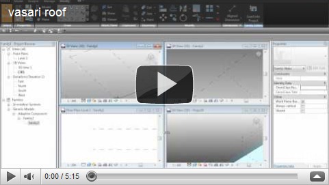 Unfortunately we didn’t win the competition, The roof was actually modelled in another application, but I was able to produce it easily in Revit 2010. So I thought I’d show you how to do it in Vasari using an adaptive component family nested into a mass loaded into a project. Hope you enjoy.BTW I don’t normally work this fast!!! :-)