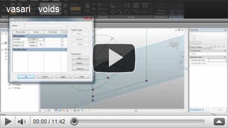 However, what Mr Read eluded to discuss was the use of voids in the massing environment within Revit 2011 or even Vasari. So this article is a continuation from my previous post where I hosted a profile on a line and created a form. In part 2, I will use the technique in the previous post; but I will also combine this with the carving void technique Phil demonstrated at Autodesk University to create the parametric form you see above. The exercise is undertaken in Vasari, but you could just as easily do this using full Revit's massing functionality. You will be glade to know that there is no music, just my dulcet tones explaining how I put this together. I hope you find this useful.
